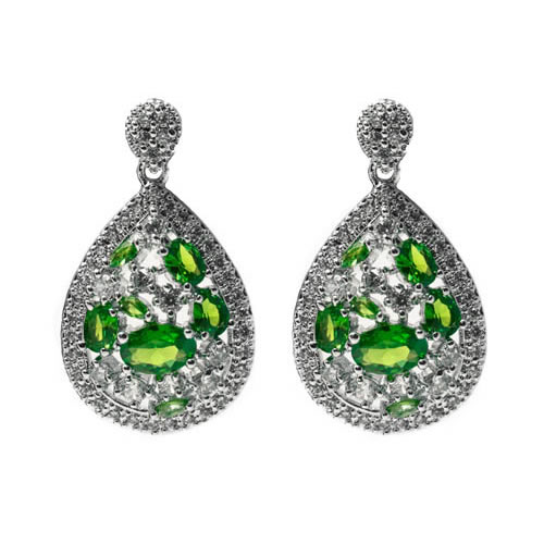 Pendiente Irak. rodiado y pavé circonita verde. Antialérgico