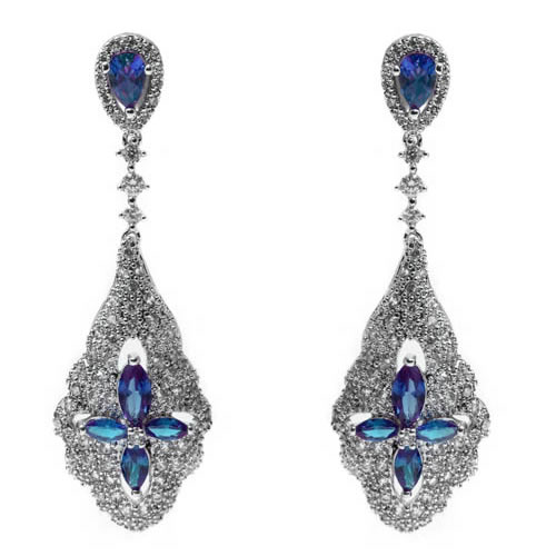 Pendiente Qatar rodiado y circonita azul. Realizado en materiales 100% antialérgicos.
