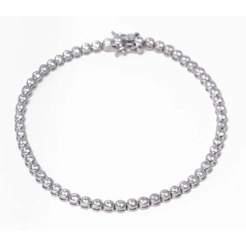 Pulsera Chatón 5mm plata rodiada y circonita blanca. Antialérgico.